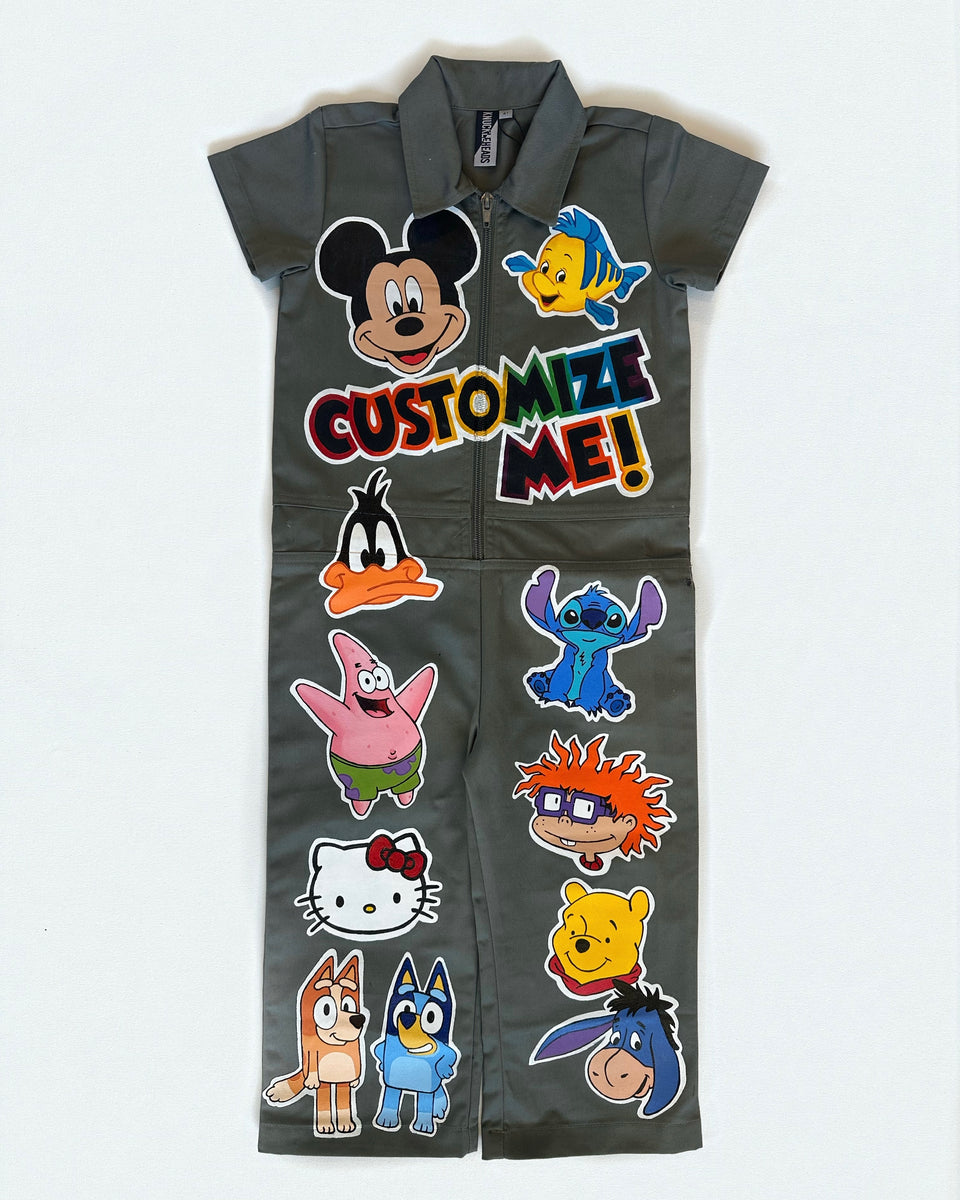 Celebrate your little one's special day with a one-of-a-kind hand-painted jumpsuit. Featuring vibrant characters and a personalized name patch on the back, this outfit is perfect for birthdays, photoshoots, or any fun occasion! Customizable, Unique, Handcrafted with love. Email to order yours today!
